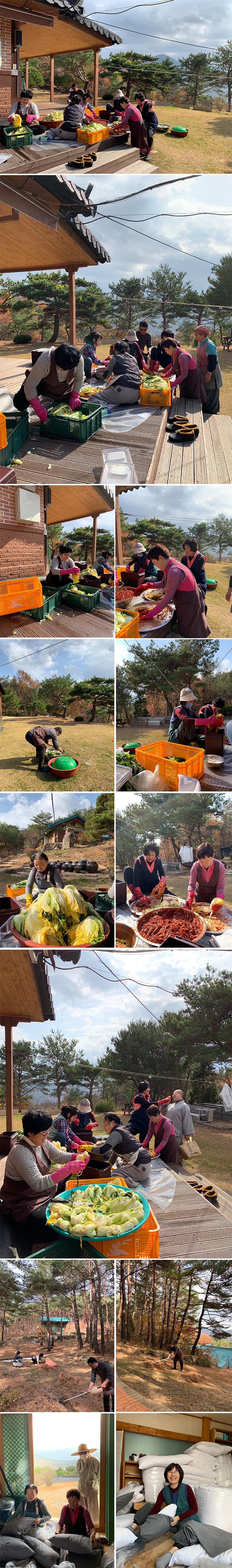 역경원 김장 울력 관리자 2019-11-27 조회수 : 3299 첨부파일: 191116.jpg 지난 11월 16일에 서울, 부산, 대전지부 회원님들께서 역경원 김장과 경내 정비, 좌복 정리 등 울력을 하셨습니다.고되셨을텐데 밝은 모습으로 울력에 나서주신 회원님들께 진심으로 감사드립니다._()_
