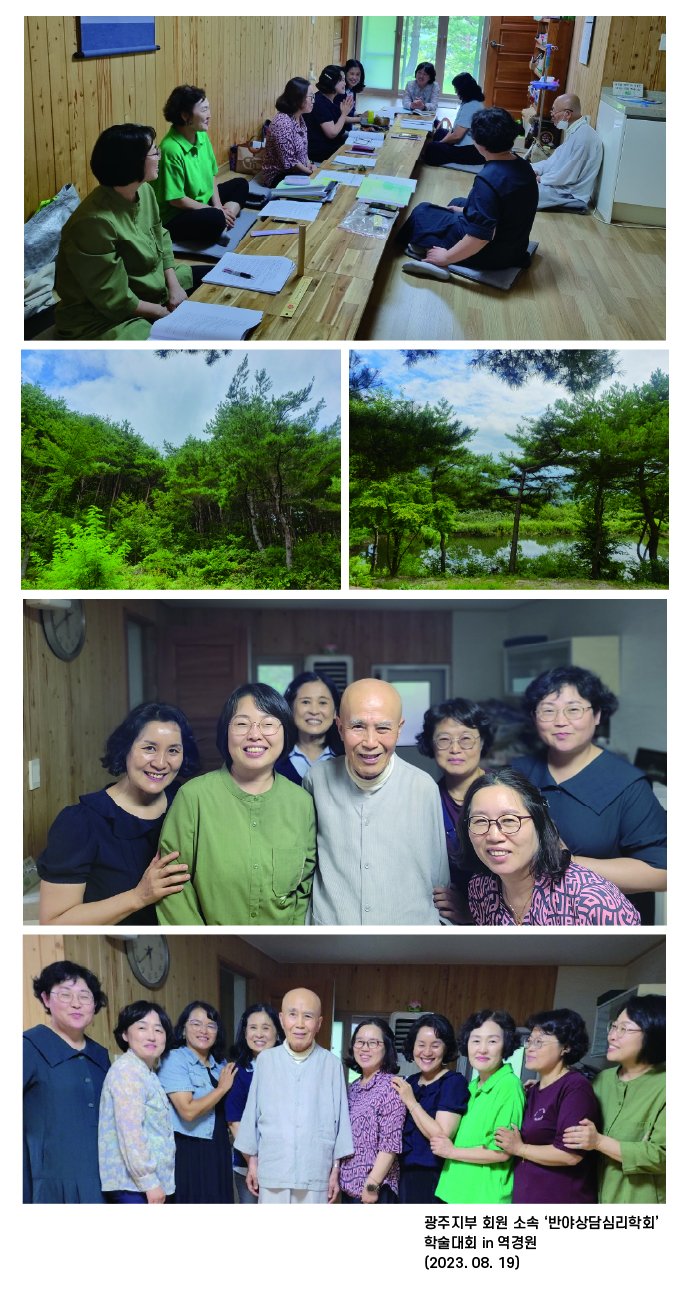 〈고요한소리〉 광주지부 회원들이 소속되어 있는 「반야상담심리학회」 학술대회가 8월 19일 역경원에서 활성 스님을 모시고 이뤄졌습니다.