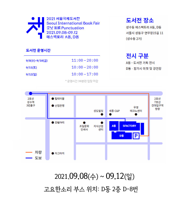 올해 2021서울국제도서전에 고요한소리도 참가하게 되어 안내드립니다.