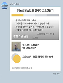 The society sends out to members as well as non-members alike 'LETTER OF CALM VOICE' using the message function of the KAKAO TALKS channel. The message is to be sent in the form of 'Letter Of Calm Voice' so as for people to reflect upon daily lives relying on Dhamma talks on the truth.