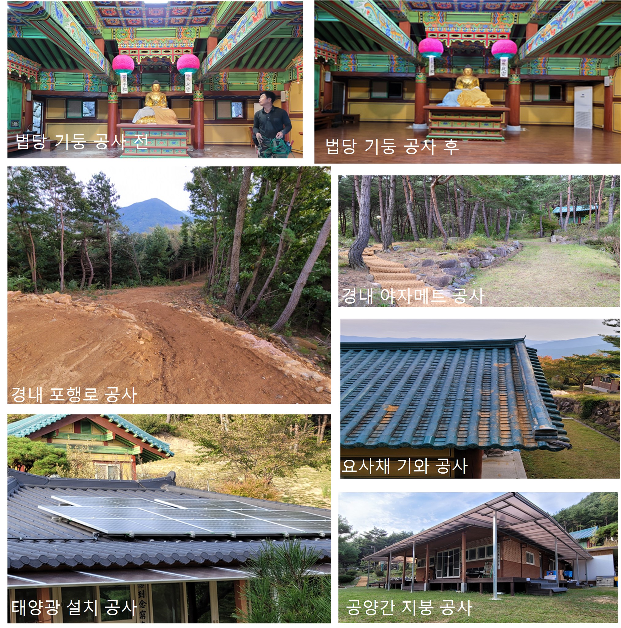 법당 기둥을 보수하면서 그동안 미루어 왔던 여러 가지 크고 작은 공사들도 함께 진행하여 마무리 단계에 있습니다.