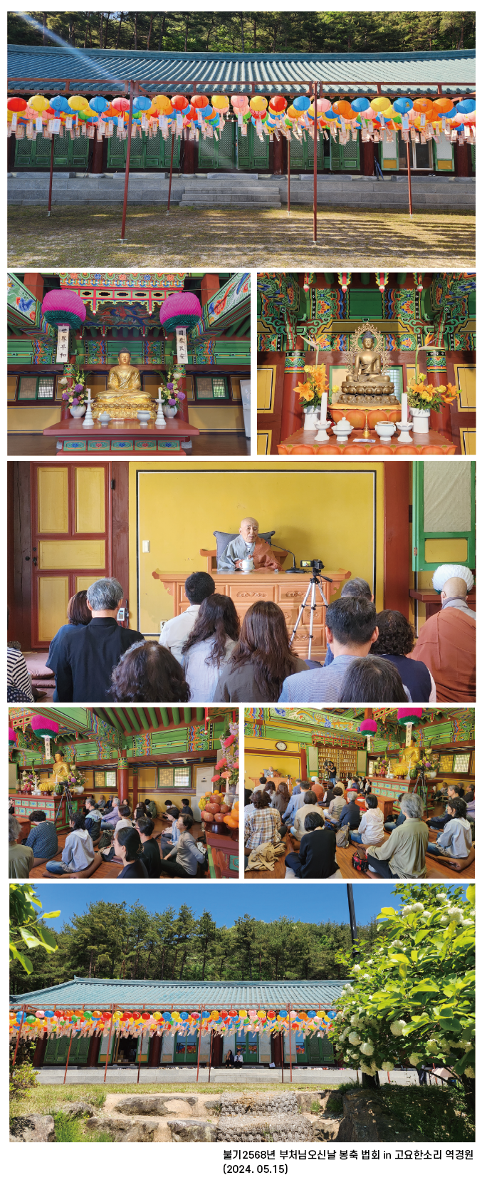 더불어서 부처님오신날 법회를 위해서 물심양면으로 도움 주신 〈고요한소리〉 회원분들께 진심으로 감사드립니다. 회원분들 덕분에 〈고요한소리〉의 모든 일들이 무사하게 성사되는 것 같습니다. 이 공덕으로 정진 여일 하시고, 수행이 향상되기를 기원드립니다.