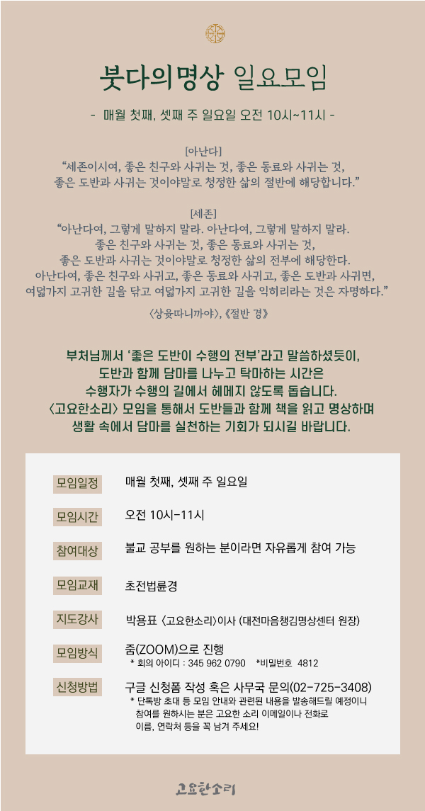 붓다의 명상 일요 모임 안내(상시 참여 가능)